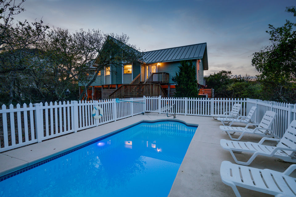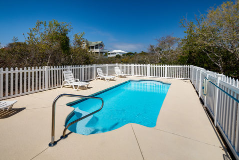 Outside, you can enjoy the pool (heated for a fee) and hot tub with large charcoal grill and outdoor seating. The home also has an outdoor shower and fish cleaning station with plenty of parking under the home. The home also has a “dune walk” where you can walk to a sitting area and talk or watch the waves. ‘Sea Dunes’ also borders the boardwalk to the beach so you can’t find a shorter walk to the beach in the Plantation. Sea Dunes is surrounded by natural vegetation that makes it one of the most private homes on the entire island.