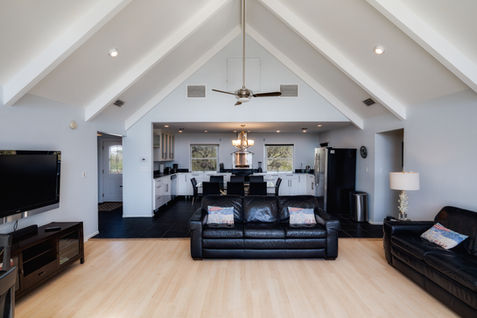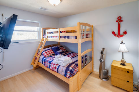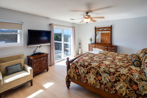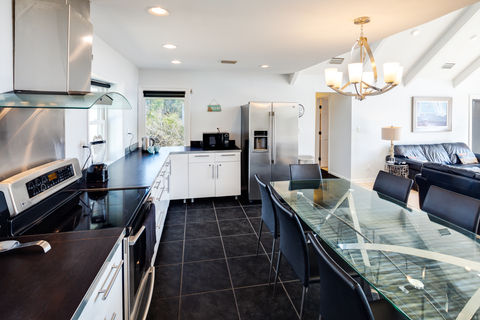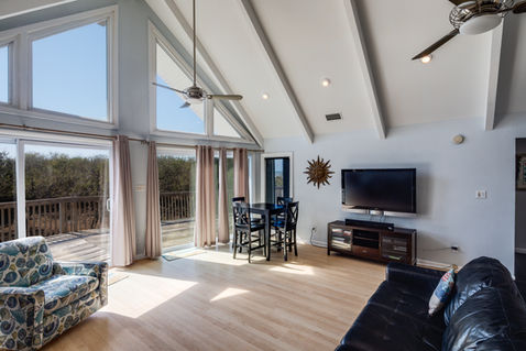 Sea Dunes is decorated with a modern beach theme throughout and as we mention above, nearly everything you touch is new. The home has hardwood floors throughout the living areas and tile in the bathrooms and kitchen. The kitchen is large with seating for eight at the dining table. In addition, there is also seating for four more in the large, open living room. The living room has a 50-inch LCD TV with DirecTV, blu-ray player and sound bar. Three of the four bedrooms also have LCD TVs and DirecTV with a 42-inch TV in the master bedroom.